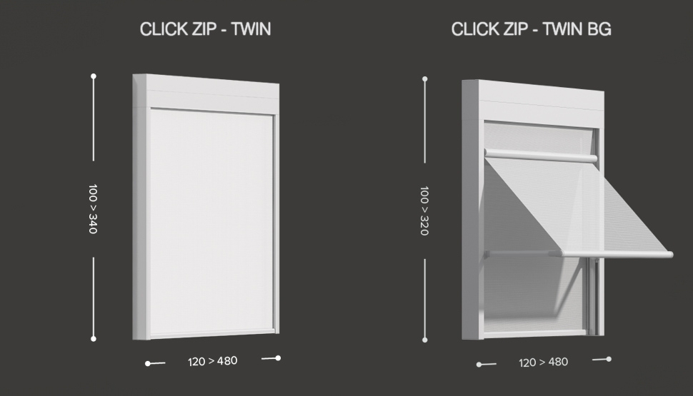 Za še bolj efektivno senčenje in zračenje, je na voljo tudi izvedba TWIN-BG z vzmetenimi, preklopnimi rokami.